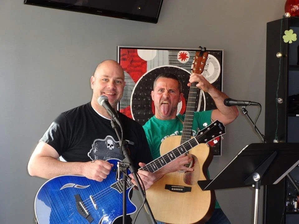 We are Brad T. (left) and Kevin J (right). Two retired Marines who make music together.